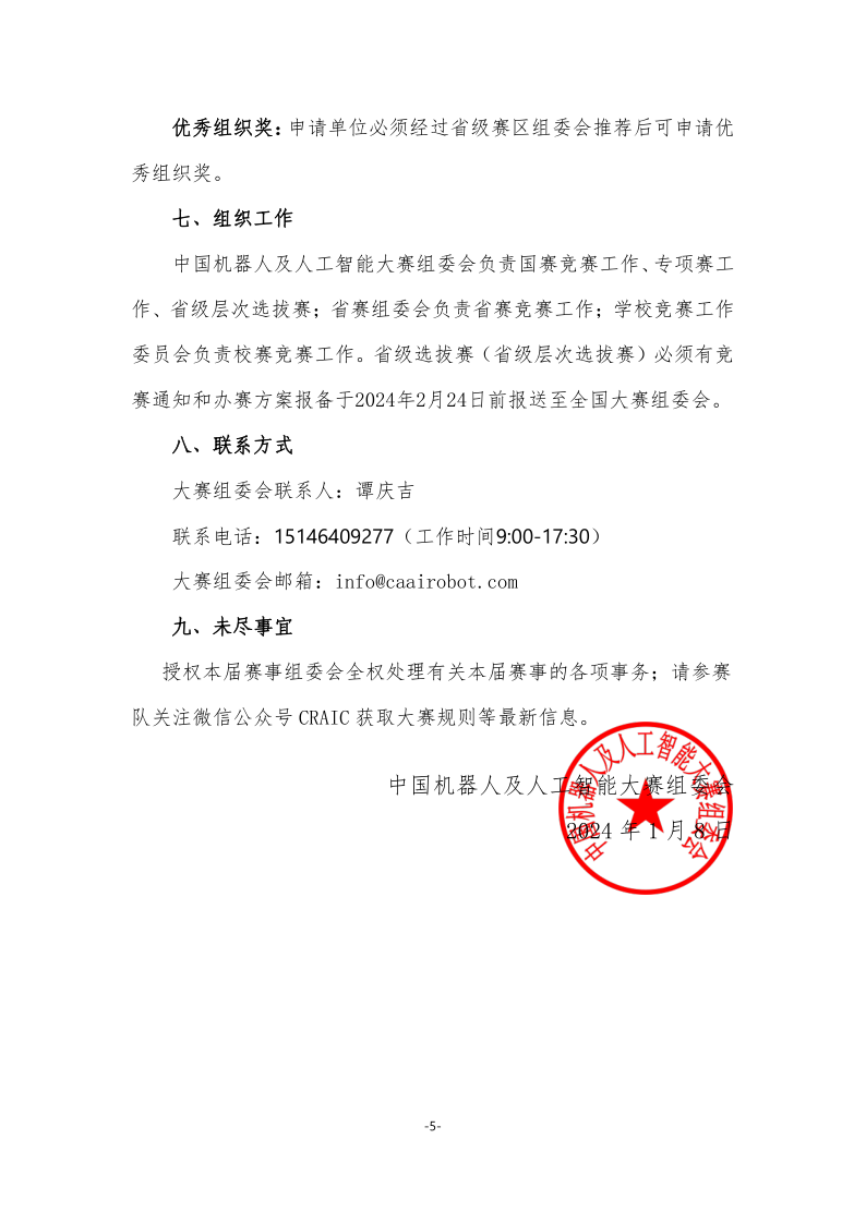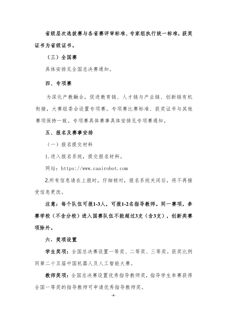 學生獎項:全國總決賽設置一等獎、二等獎、三等獎。獲獎比例同第二十五屆中國機器人及人工智能大賽。
