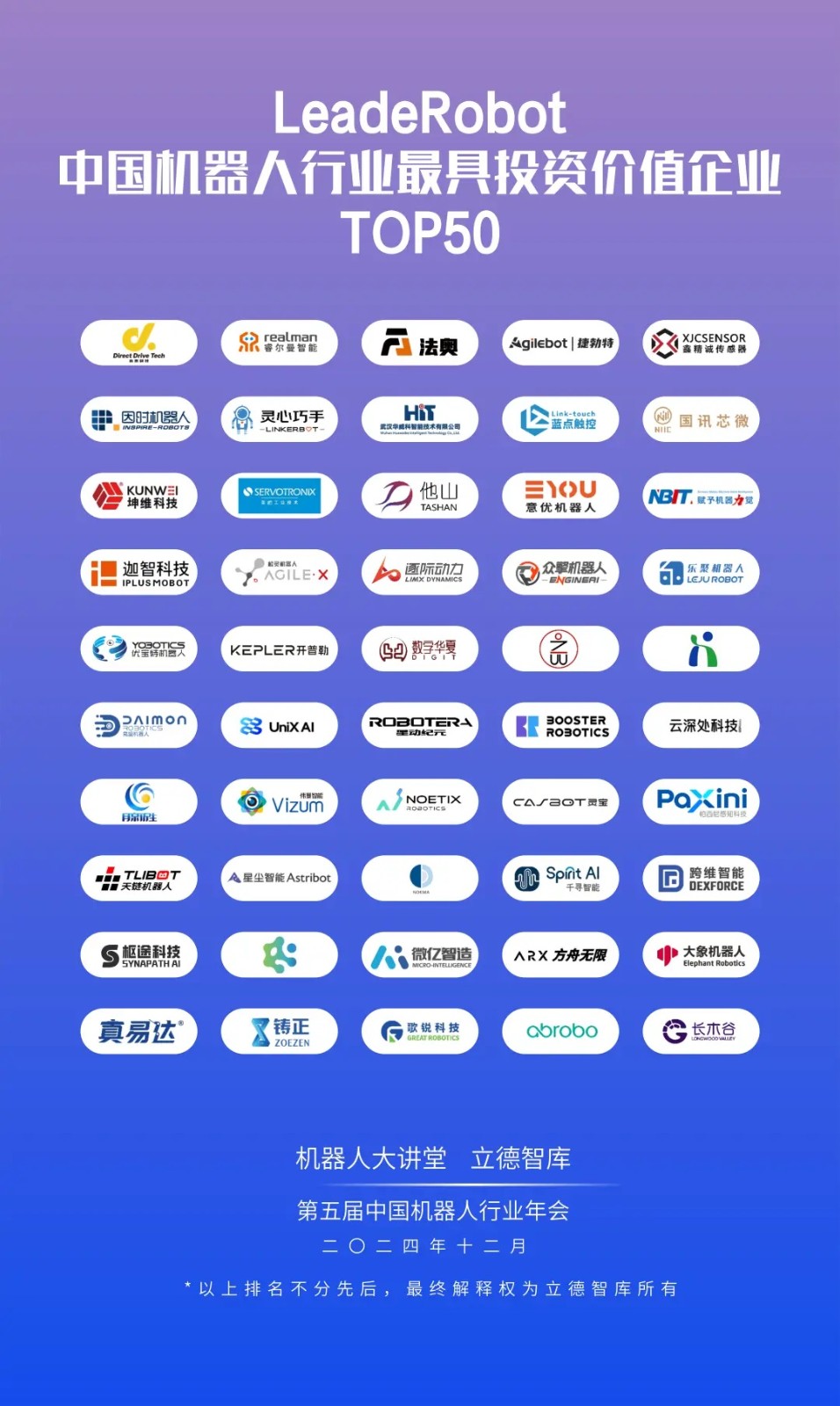 • 松靈機器人、優寶特機器人、長木谷入選“LeadeRobot2024年度機器人行業最具投資價值企業排行榜TOP50”