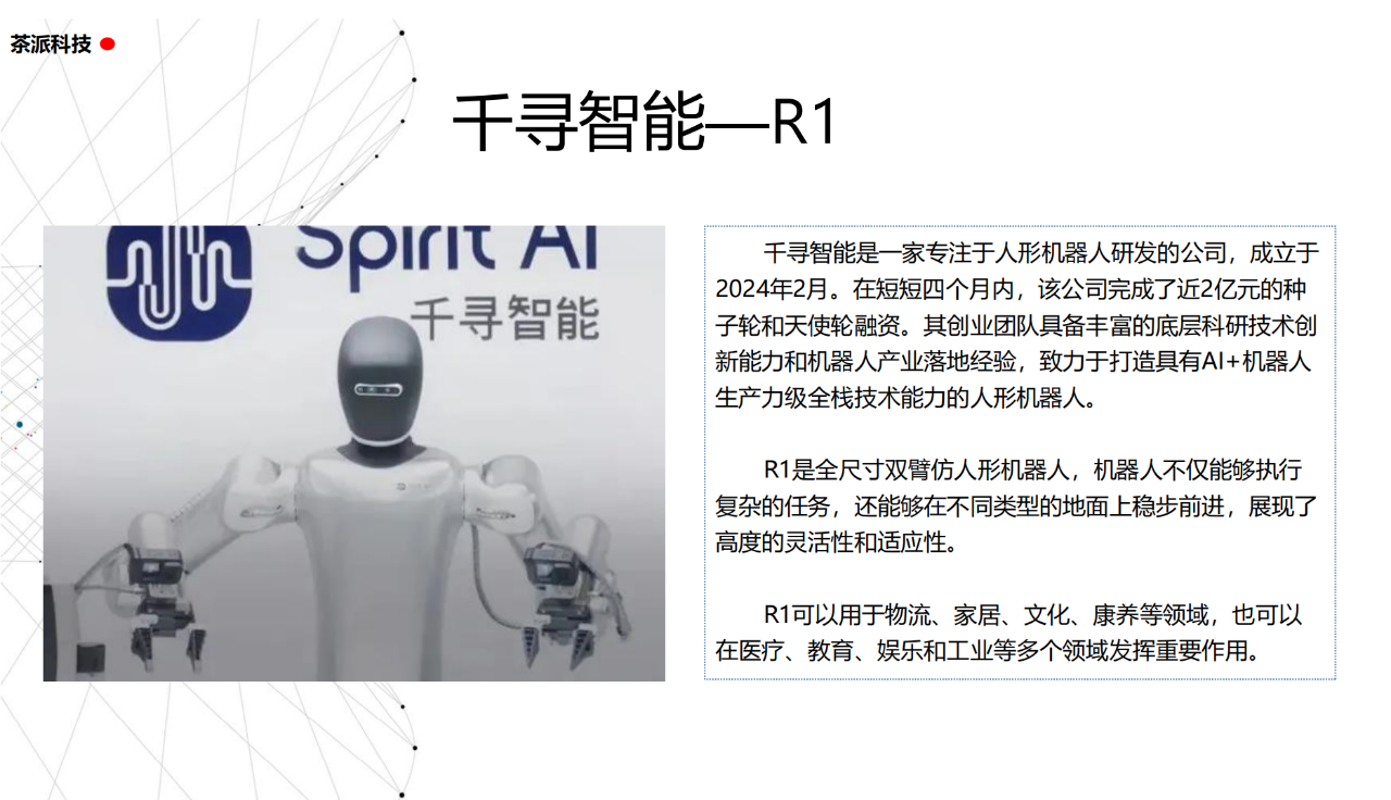 從實驗室到生產線,從概念設想到產品落地,中國人形機器人領域迎來了前所未有的井噴式發展。一款款設計精巧、功能強大的人形機器人如雨后春筍般涌現,它們或靈巧如舞者,或力大無窮,更不乏擁有情感交互能力的“智慧伴侶”。這不僅是對技術極限的一次次挑戰,更是對“中國制造”向“中國智造”跨越的生動詮釋。??在這一波人形機器人浪潮中,無數初創團隊猶如璀璨星辰,他們懷揣夢想,勇于探索未知。每一個深夜的燈火,每一次算法的迭代,都是對未知世界的勇敢叩問。正是這些充滿激情與創造力的團隊,為人形機器人產業注入了源源不斷的活力與希望。??作為深耕機器人應用場景研究的先行者,武漢茶派科技深知責任重大。在這一年里,我們積極擁抱變革,密切關注中國人形機器人產業的每一步成長。我們愿做那座橋梁,連接百家智慧,匯聚行業力量,共同推動人形機器人從技術的象牙塔走向廣闊的應用市場,讓科技之光溫暖每一個角落。??展望2025,我們滿懷期待。隨著技術的不斷迭代與應用的持續深化,人形機器人將不再只是展臺上的明星,而是真正成為我們生活的一部分。它們將穿梭于家庭、醫院、工廠、學校……以更加人性化、智能化的方式服務人類,成為我們不可或缺的伙伴與朋友。??在這一年的尾聲,讓我們向所有為中國機器人產業發展默默奉獻的科研工作者致以最崇高的敬意!是你們,用智慧和汗水鋪就了通往未來的智能之路。2025,讓我們攜手并進,共同見證人形機器人從夢想走進現實,開啟一個屬于所有人的智能新時代!??加入我們,一起見證并參與這場科技革命,讓未來因你我而更加精彩!